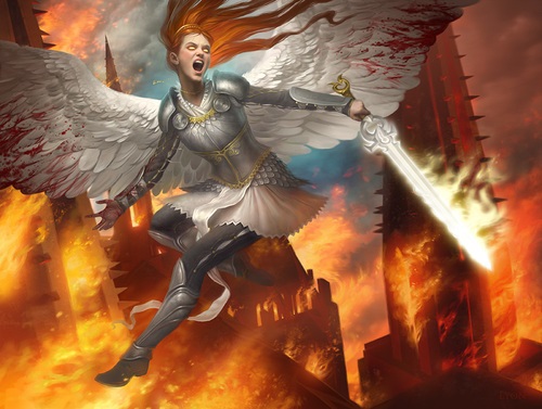 Focusing on the angel is not a better solution as that makes a spell look like a creature, but there could be a little more face-time of a nameless (or named?) angel into a spell that was supposed to be marquee during this time. “Terror falls from the skies on blood-spattered wings.” was a tagline and while we can see the wings, there is no other story here. It’s just one raid amongst many. Why not a Kessig raid on remote prayer spot, showing no one escaped the wrath of the renegade angels? Why not showcase somewhere that isn’t a church or a city square? A planet and setting is much more than just locations where legendary creatures and high powered cards are located and I feel this could’ve helped that narrative instead of just repeating what we already knew.