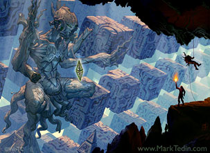 After doing a few dozen more images, I came back to this artwork, and I remembered where the sunken hedrons were from in the background. It’s the style guide from Mark Tedin’s mind.