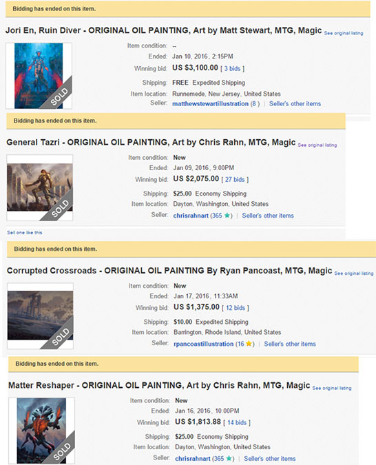 In case you haven’t seen me yapping on Twitter, Magic original art is selling nearly every day. Most of it is happening at the MTG Art Exchange Facebook group, but eBay is still the steady marketplace of choice for the “names” of current sets. Though, something odd happened as of late: