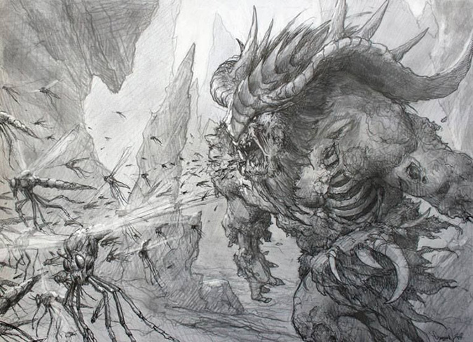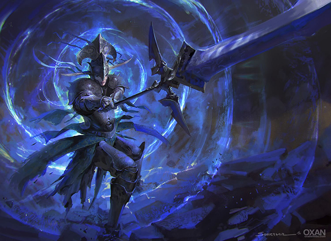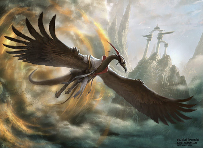 A lot of people asked me about this painting on Twitter. It’s a book-cover composition, plain and simple. It exudes power from the fact that it’s a mythic rare card. That “power” added to an interesting focusing element of the piece arrives to a successful image. It actually takes you a second or third glance to notice the motion blur he used in the image. That’s strength in finishing details!