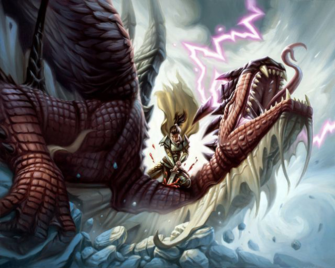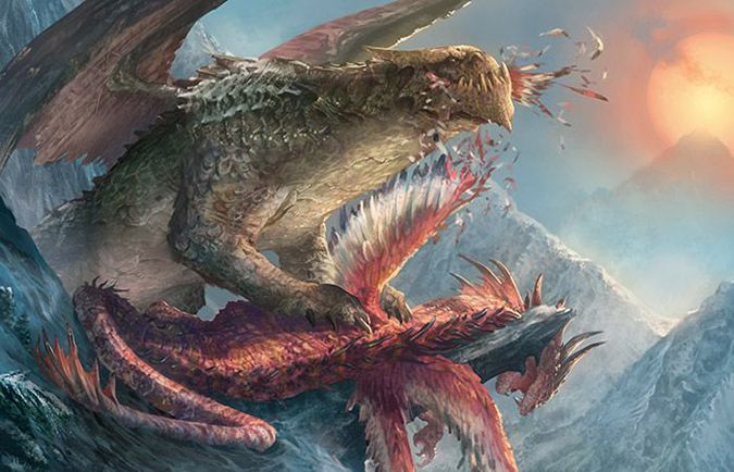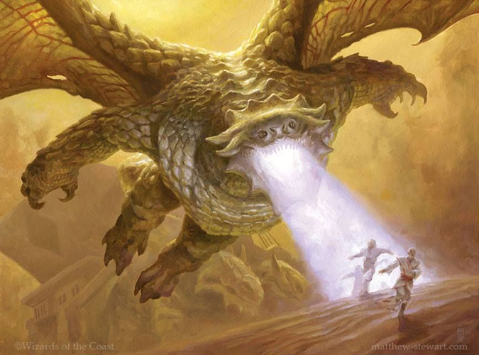 In case you missed it, yes, it is intentional to have the Dragonlords in flight in Fate Reforged and landed or on the ground in Dragons of Tarkir. I thought a downed dragon was a dead dragon. I could only kill dragons in the AD&D world of Tenne when they exhausted their breath weapons. It’s not so much that they’re lazy, they’re just lords. Like food critics, they don’t have to eat everything if they don’t want to. They can spew fire if they want to; they would just rather take part in leisure.