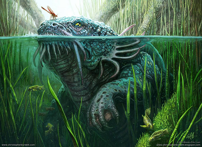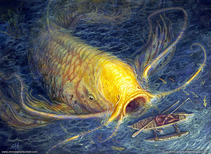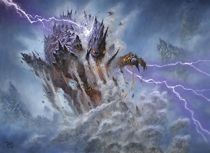 I like Burdett’s monsters. They’re all “rawr,” and the Magic community seemed to like him when he broke in. When he painted this giant fish, people lost their collective minds. It’s a giant goldfish—it’s basically 2015’s version of the Melissa Benson fan favorite Segovian Leviathan. While branding and style guides prevent much of the wackiness, occasionally, a giant goldfish is on point. If you give a commission like that to a monster guy, he can give you immensity and a restraint in not showing too much. I look forward to seeing his prints of this card artwork. It’s a beautiful artwork.
