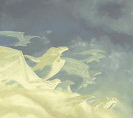 - Dragons emerging from clouds—not being born
