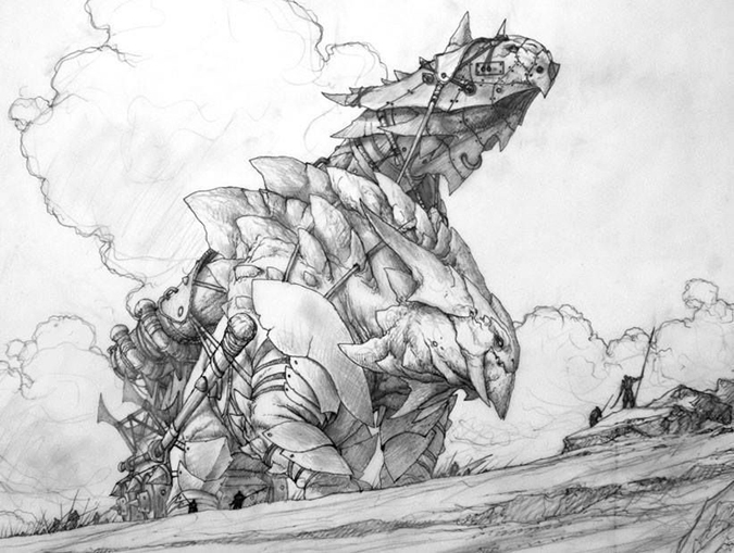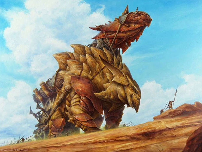 I’m not even surprised this is already sold. It reminds me of the living master’s James Gurney’s Dinotopia world. The stellar usage of weight in both gear and armor is mighty tough to show in a 2” × 3” card frame and read in a larger-than-average Magic painting. It’s a feast for the eyes to examine all the stuffs in the image. Remove Magic from this piece, and it’s still a fantasy art image of value. It’s Filip’s best thus far in my opinion.
