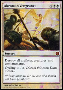 Aleksi is Planeswalker—no question there. He even painted himself as Tezzeret, turning it in with his original five. Later, they used it on a card! I’d like to mention that, as Battle for Zendikar is coming up, his Eldrazi Spawn token may be needed, so see what his table has for weird swag/alterations in that department. I also like his Akroma's Vengeance for FTV:20 to see if he has a print available.