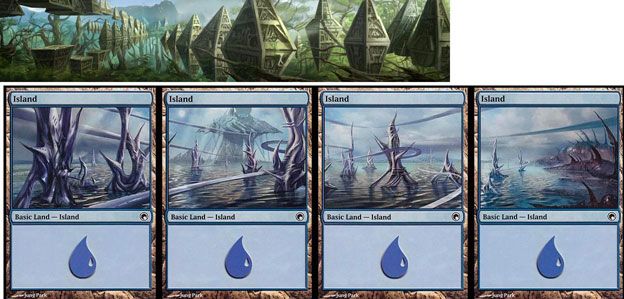 It appears that only thirty-seven artworks are listed . . . don’t let that fool you. He did five full-art Zendikar lands. Two panoramas are listed below. I’d really check very closely for artworks you own to see. I’d buy a boatload of prints of panoramas—I know I will!