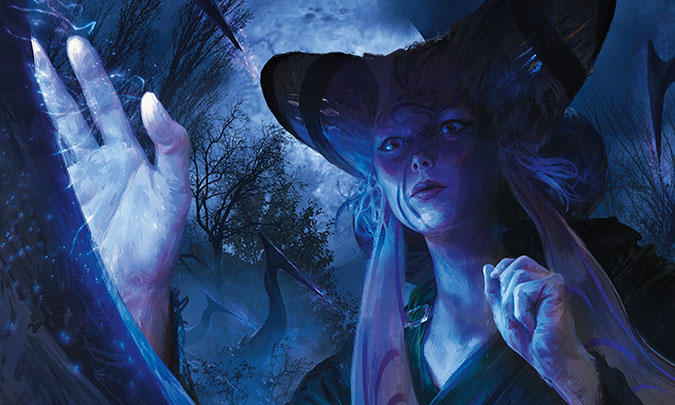 There is a strong subtheme of bringing playfulness back in Shadows over Innistrad. Cards like Triskaidekaphobia and Trail of Evidence are bringing that 1990s sensibility of whimsy back into Magic. Showing a strongly conceptual and whimsical piece can have the necessary depth a 2016 set requires while having fun in doing so. It works both for new artworks and reprints like the preview card I received in Macabre Waltz by Will Murai.