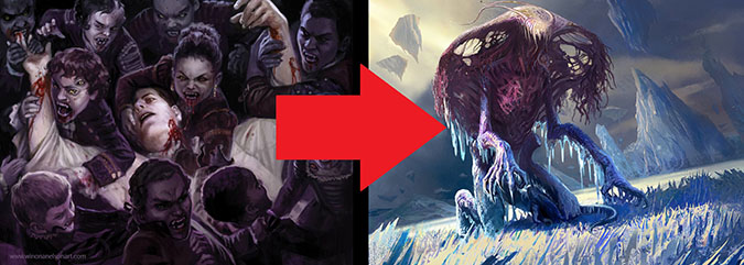 We already know what to look for; Battle for Zendikar gave us an example of a humanoid turning into an Eldrazi. A ton of examples are apparent all over the place. Scan Reddit or Tumblr for ten seconds, and you’ll see oodles of examples. What I’d like to point out is that the first stage of corruption is already happening.