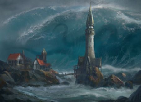 The visual narrative of panic, paranoia, and hopelessness are not a thought—they’re real, and their angel savior will exterminate them. Art reflects this. Innistrad fear is real, and madness finds you when all you can do is wait for the inevitable. It makes sense that cult worship of a sea god, or any deity that will listen, is humanity’s only hope. Life is bleak when your faith doesn’t prevent tragedy. Quite.