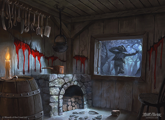 MJ Scott and I took nearly a month going over every card in Innistrad, over a series of six articles back in 2011, to talk art, tropes, cultural references, and more. I encourage you to look over it; it’s a product of its time, but we did document all the movie references we could find, which are many in the original Innistrad. An old colleague, Brendan Weiskotten, did one on Avacyn Restored as well.