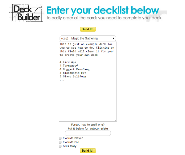 I built a quick commander build on TappedOut, then copy pasted the list onto Cool Stuff Inc’s deck-builder. It works incredibly well, able to find the cards under $1, picking version and condition to make it work.