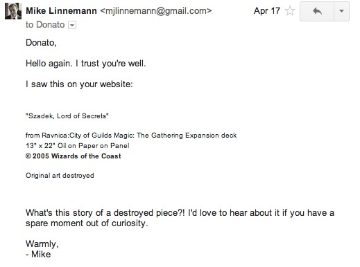 This past month, I asked living legend Donato Giancola why this piece was listed as destroyed: