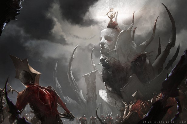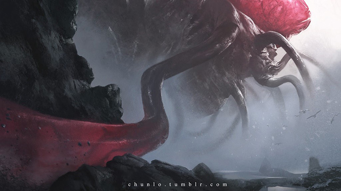 I find Chun Lo to be incredibly strong at composing tight scenes between two figures. Perhaps that’s why he’s gravitating toward making incredible Eldrazi-inspired artworks. He’s been really pushing to get his name in front of Magic art directors for a while. He’s made a bunch of fan-made creations.