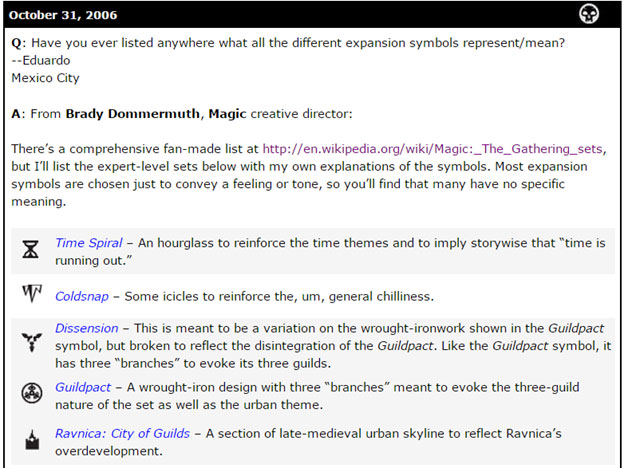 - 2005 — In August, Taste the Magic series by Matt Cavotta begins with Matt explaining all the areas of the card that are considered flavor, and thus, are Vorthos-aligned.
