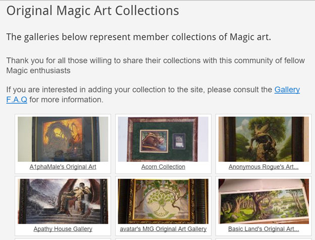 - 2012 — In October, Original Magic Art in its current form replaces functionality of the wiki. Krause created galleries where anyone can see art collector submitted images. Features come and go, but the galleries and marketplace are some of the more popular pages there.