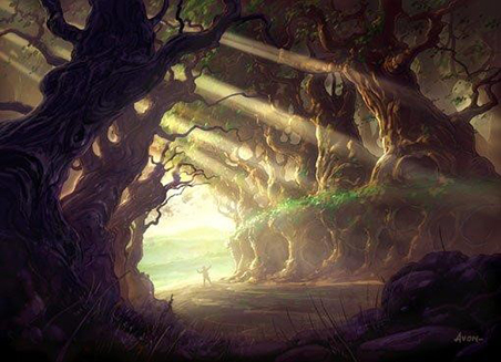 As for the art, it’s in a forest, allowing for the setting, with some distant plains with peeking-in light. Add in some creepy trees, and all mana-producing colors are represented. This is a fantastic representation, and it brings us a unique-looking land. It almost feels concept-art- or fairy-tale-inspired . . . showing the Lorwyn/Morningtide setting!