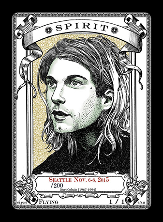 Yes, the originator of the exclusive will have some fire, as usual, at Grand Prix Seatac. His series is now moved onto Affinity as forty-print-run play mat and a two-hundred-count Spirit token of Curt Cobain.