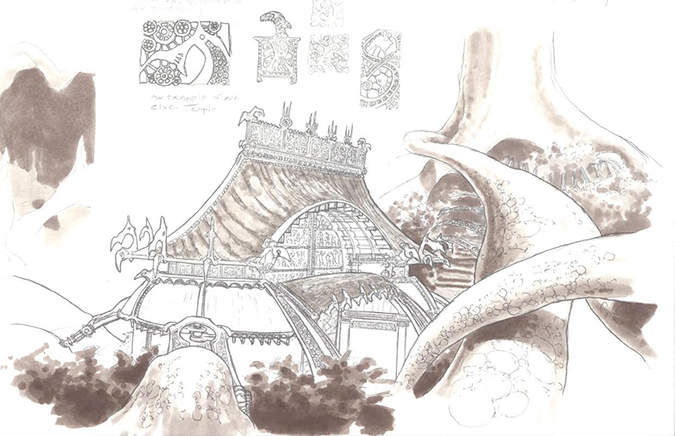 Urzan Elven Temple, Marker and Pencil. Copyright WotC @ 1998.