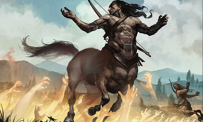 Visual iconography shows us rules for any digital illustration. Once you look at enough artwork, you can see trample, first strike and other mechanical elements. It’s hard for artists to turn his or her brains off, especially if he or she is a player of the game. In this piece, exiling this centaur is shown by an ethereal body. He’s see-through.