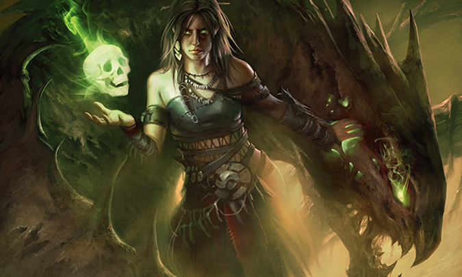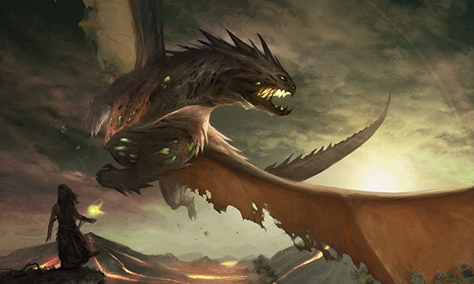 The green poking through the dragon’s stomach, showing the recycling magic of Golgari, is a fun touch. It is a zombie dragon, after all.