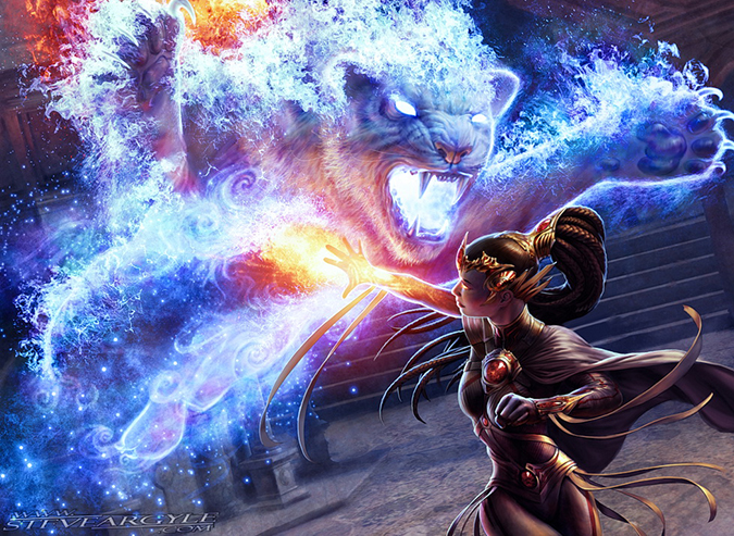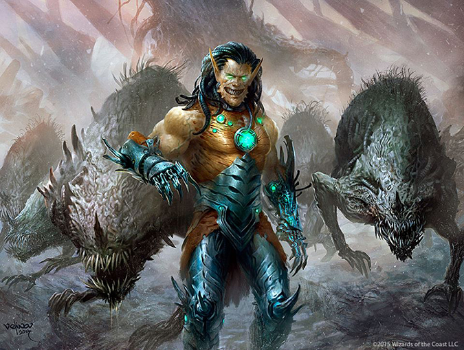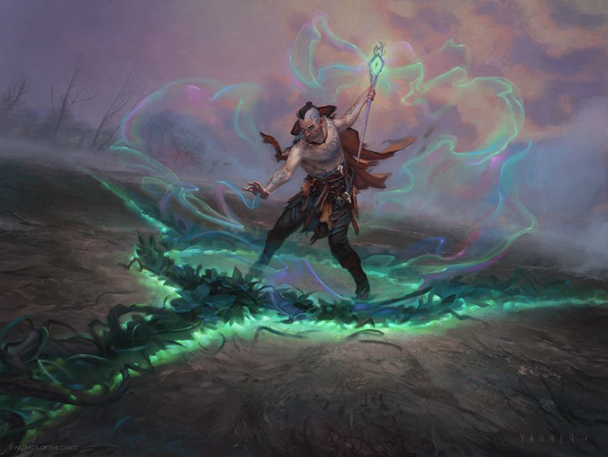 I love his depictions of women made for Magic. The costuming is doable and interesting. Her hair is interesting and not seen on card art yet. To boot, he made us all think this was a Deathrite Shaman as a woman. He gave us a nod and a wink, and I love seeing artists understand what players are looking for.