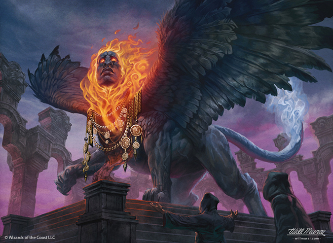 I like when artists play with magical elements of primary colors. Will has been slotted in as the “guy who can make white-aligned soldiers, warriors, and humans of any kind.” It’s nice to see him have an odd, out-of-the-box commission. I enjoy the face of his sphinx. It’s emotionless, like most sphinxes in Magic, but it also isn’t a white Anglo-Saxon face. It’s more actual Egyptian. I’ve visited the British Museum a few times, and after seeing our boy Amenhotep also have sculptures that feel similar, I feel Will was trying to inject some allusions to representation into this mythical creature. I like that. Let’s see more of that and celebrate that.