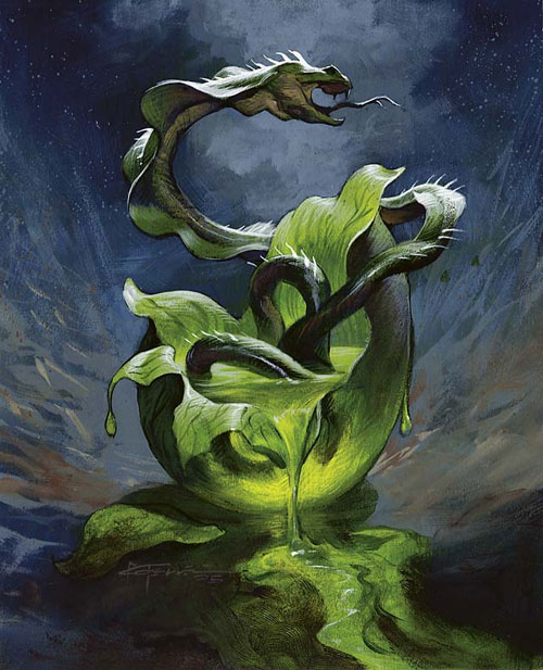 You see, slush art has fewer and fewer houses and definitely is harder to find a home for without a core set. That is true—unless you think of supplemental products like Commander, Conspiracy, and Modern Masters series. Whenever a new product needs art, you make a list and commission the art, and then the weird things happen. When a card is cut for being over or underpowered, that artwork then has no home. Sometimes, it can be switched to another card in the set. If not, it goes into the slush-art pile. There exist times when an artwork is good but not great. The art is still bought, but it can’t be used for myriad reasons, and that artwork goes into the slush-art pile. Card designers look through this folder for ideas for cards, thus saving a little money on the art budget and putting an artist’s work out in the open. Since Wizards owns the slush art, the artist isn’t supposed to showcase the artwork or sell the original due to the nondisclosure agreement. Now, if the art isn’t up to par or doesn’t fit at all, the artist can be paid a kill fee and Wizards doesn’t get the artwork. The artist then retains all copyright of the art and can make play mats or use it however he or she would like. Normally, you really don’t want to be paid kill fees because they’re significantly lower than the normal rate.