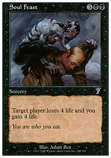 Soul Feast has multiple reprints and it will probably have a future reprint as well. It shows a pretty uncommitted location in the art, so it could be used and reused again and again.
