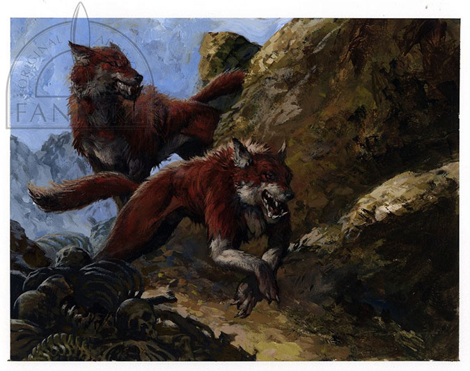 2. Russet Wolves Original Art by Christopher Moeller – $250