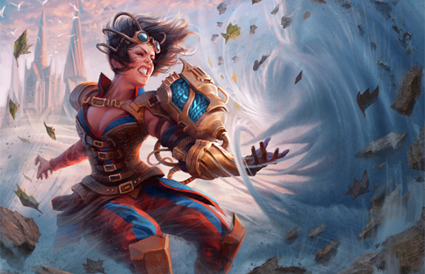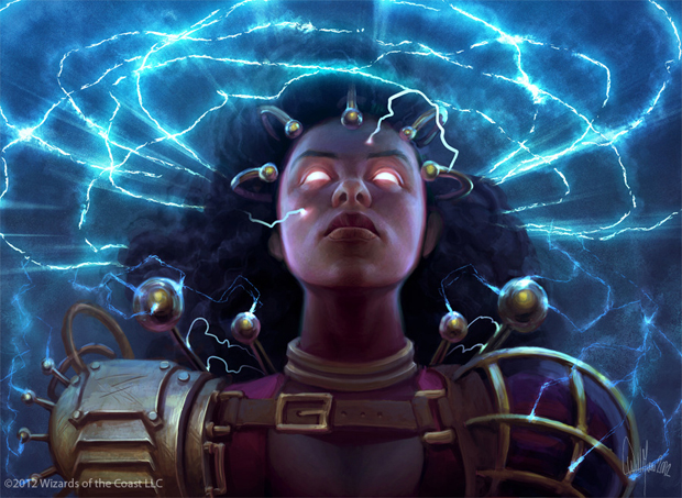 Izzet Staticaster receives high marks for attitude, her reasonable outfit (on most counts), athletic body type, and her joie de vivre attitude.