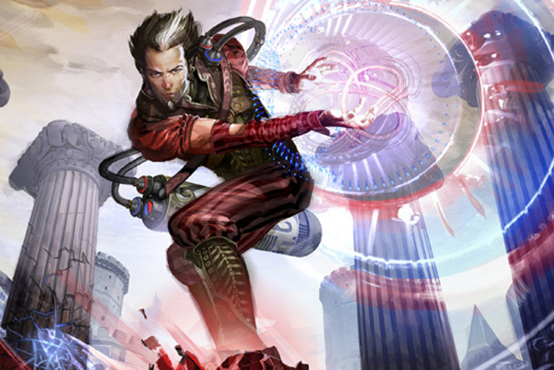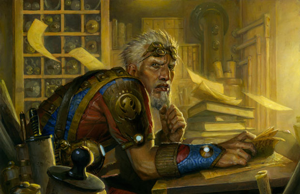 Izzet Guildmage may not look like much, but he receives VIP treatment at all the best Ravnica bars (he remodeled major distillers’ column stills to maximize profits).