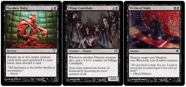 Macabre Waltz is dynamic, nauseating, and funny at the same time, which is fitting since it reminds me of Dancing With the Stars. Village Cannibals is too much fun because of the point of view. Egads, those cads found me—even on the top bunk! Can’t really look at Victim of Night because I want to eat dinner. So that is that. Don’t see your favorite frighteningly great card here? Please post in comments!