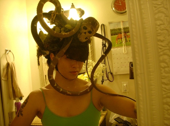 I love the power and elegance of gorgons, and overall, I am pleased with how the costume turned out. Obviously, this was for a photo shoot—as I wouldn’t have been able to go to an event or even walk down the street without my hide disintegrating. That’s flavorful, though.
