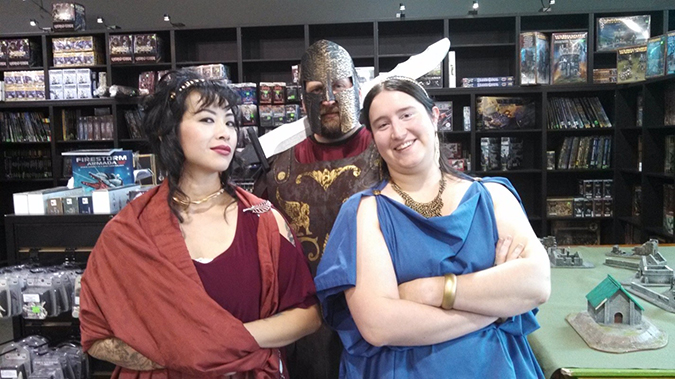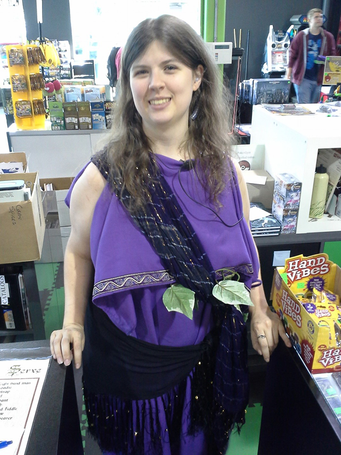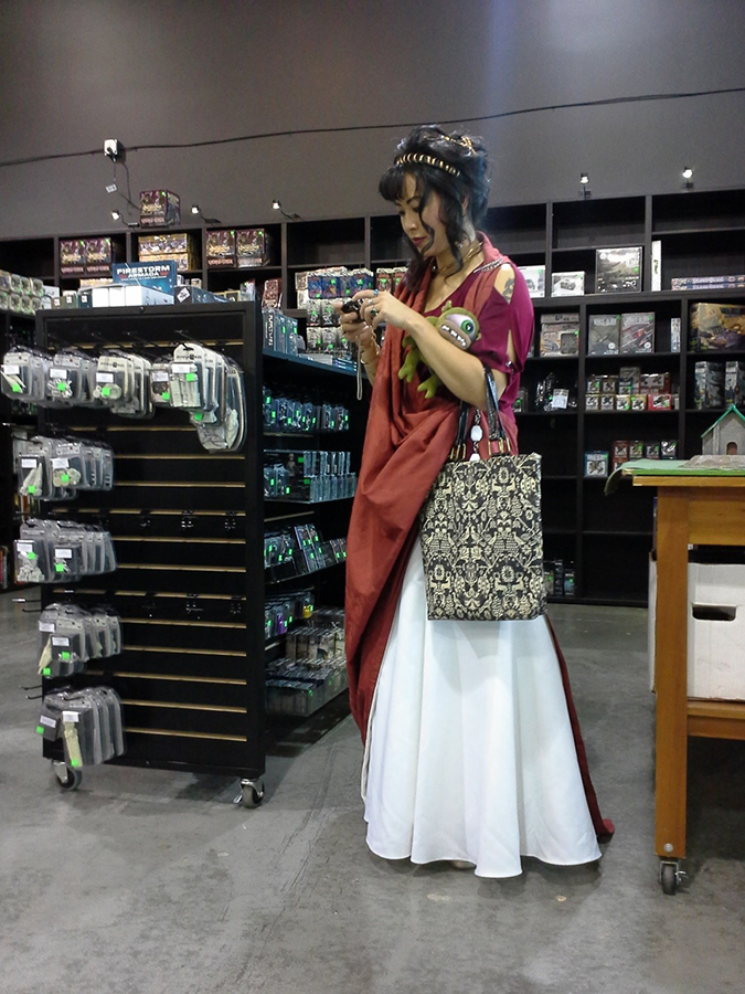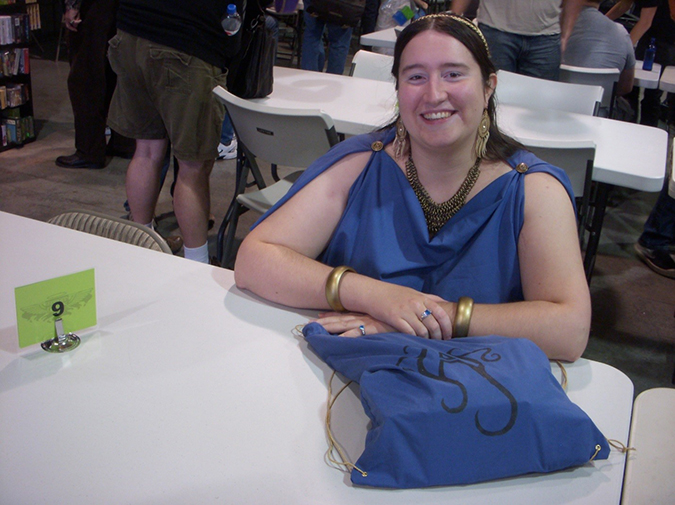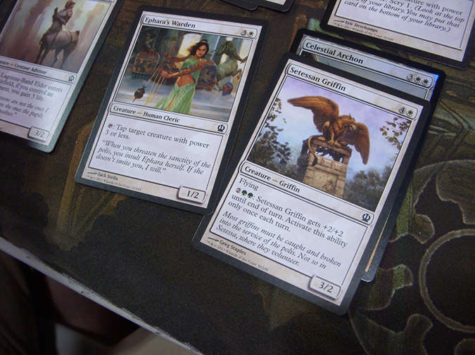 MJ aside: It was a real thrill to see my creative writing in action, in print on a card on a table. “Most griffins must be caught and broken into the service of the polis. Not so in Setessa, where they volunteer.”