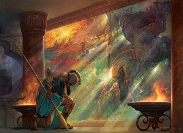 This human’s toga depicted heroes from an entirely different “plane.” I must pray to Keranos and ask him to enlighten me—are there truly other worlds that exist?