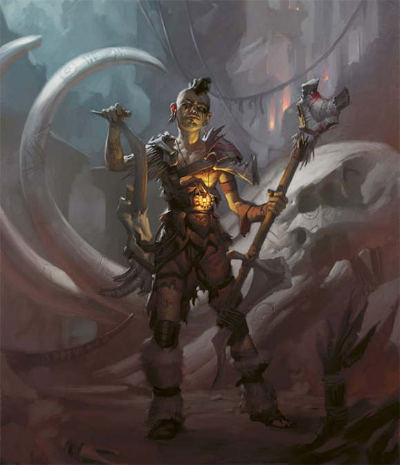 The symbol of the Gruul is a bloody, ogre-eye slashy thing that looks pretty wicked. It hints at the ferocity and virility the Gruul naturally embody. They’re a free people who fight for what they believe in, fight to settle disputes, fight for fun—okay, they just like to freakin’ fight.