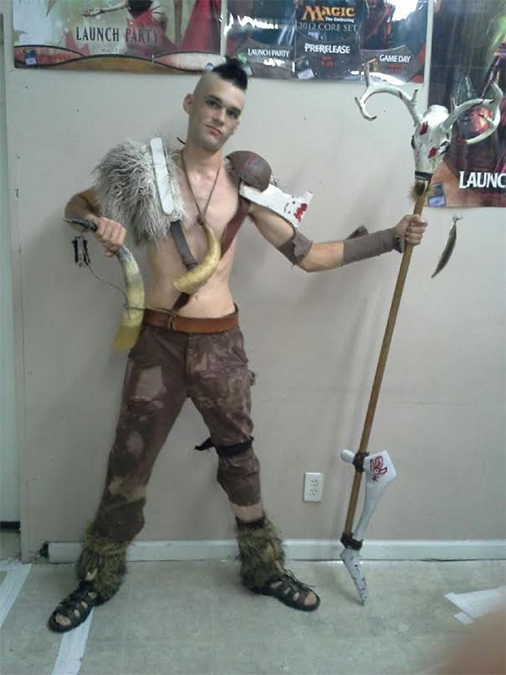 I like working with wood and metal. I have a certification in welding, and I like welding in my free time. My dad helps me with woodwork, as he’s better with a saw than I am. I also enjoy getting into the character I am cosplaying, and I can go really in-depth with it after a few minutes. Weaknesses include sewing, leatherwork, and overall armor-creation. I’m more a weapons guy, though the Domri shoulders turned out looking great. The sad part is the Styrofoam shoulder fell apart and needs to be remade before Domri’s next outing.