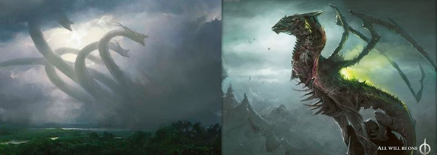 Progenitus by Jaime Jones and Skithiryx, the Blight Dragon by Chippy