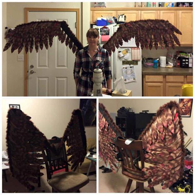 3. You challenged yourself by building articulating wings for this cosplay, too! Give us a brief rundown on that part of the build. How do you feel about the end result?