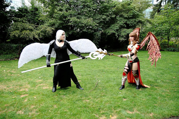 Air Bubbles as Akroma battles Avacyn by SpaceHamster Cosplay. Photo by Plainswalker Photography.