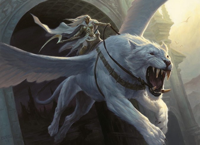 | My memory might be foggy (Theros was my first set, and I didn’t have my tracking systems in place yet), but I feel that the art and/or the card itself was different. Flavor items can be reassigned to other cards—I think. Or perhaps the art description was vague and I just envisioned her on a horse. I remember reading Wikipedia on the Four Horsemen of the Apocalypse for inspiration. Regardless, I think the name works here in a memorable, surprising way, but it does stick out a little in the Theros flavor landscape. |