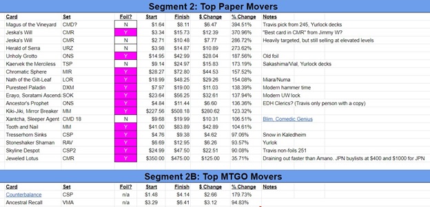 Your hosts recount the price motion on paper cards again this week including Magus of the Vineyard, Jeska's Will, Nath of the Gilt-Leaf, Puresteel Paladin, Tooth and Nail, and more.