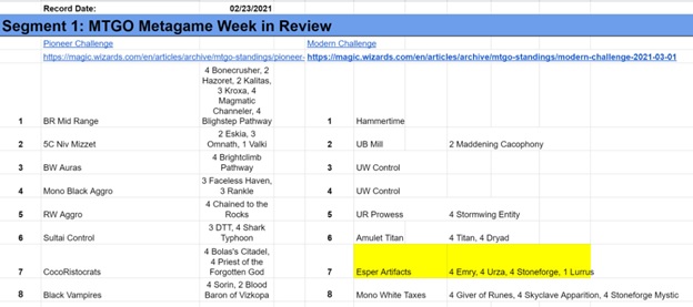 Segment 1: Metagame Week in Review
