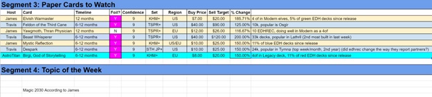 James and Travis serve up an assortment of other Magic cards that may be gaining momentum for price advances within the year.