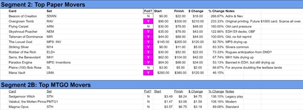 Your hosts recount the price motion on paper cards again this week including Mana Vault, Paradox Engine, Serra, the Benevolent, The Locust God, and Overgrown Tomb.