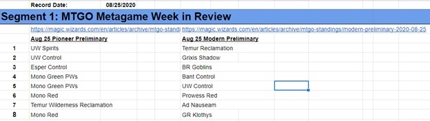 The guys break down the coolest decks from recent MTGO Pioneer and Modern prelims.