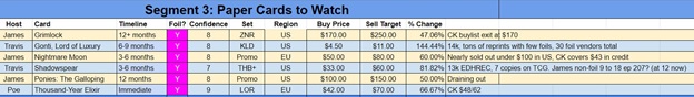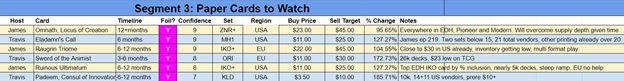 James and Travis serve up an assortment of other Magic cards that may be gaining momentum for price advances within the year.