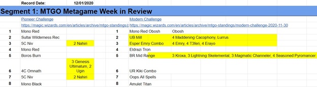 The guys break down the coolest decks from recent MTGO Pioneer and Modern tourneys last weekend.