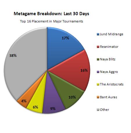 Aggressive Naya decks have become a force in the metagame. Naya Blitz and Naya Aggro have accounted for 19% of the Top 16 decks over the last month.