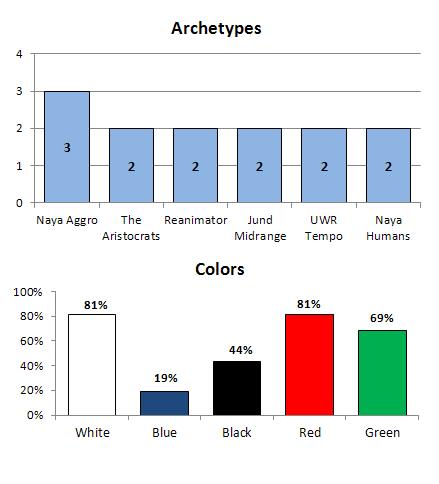| Boros Reckoner | GR Aggro | 4.0 | 4.0 | 0.0 | Naya Aggro | 4.0 | 4.0 | 0.0 | Naya Humans | 3.0 | 0.0 | 3.0 | Naya Midrange | 4.0 | 4.0 | 0.0 | The Aristocrats | 4.0 | 4.0 | 0.0 |